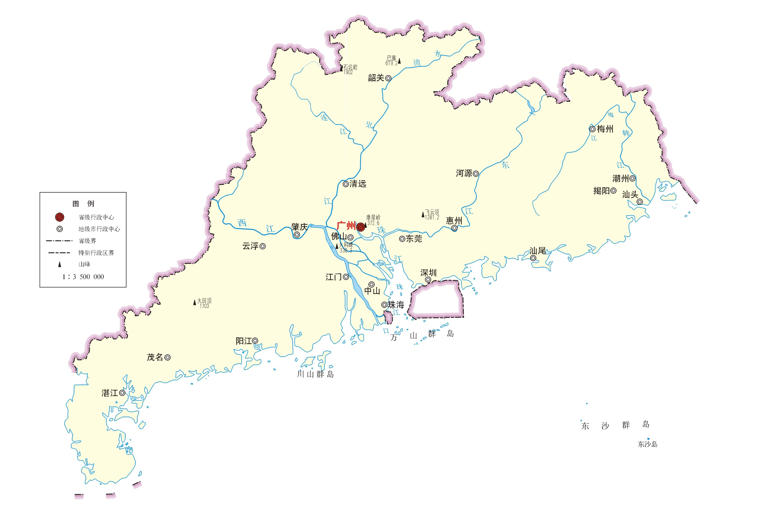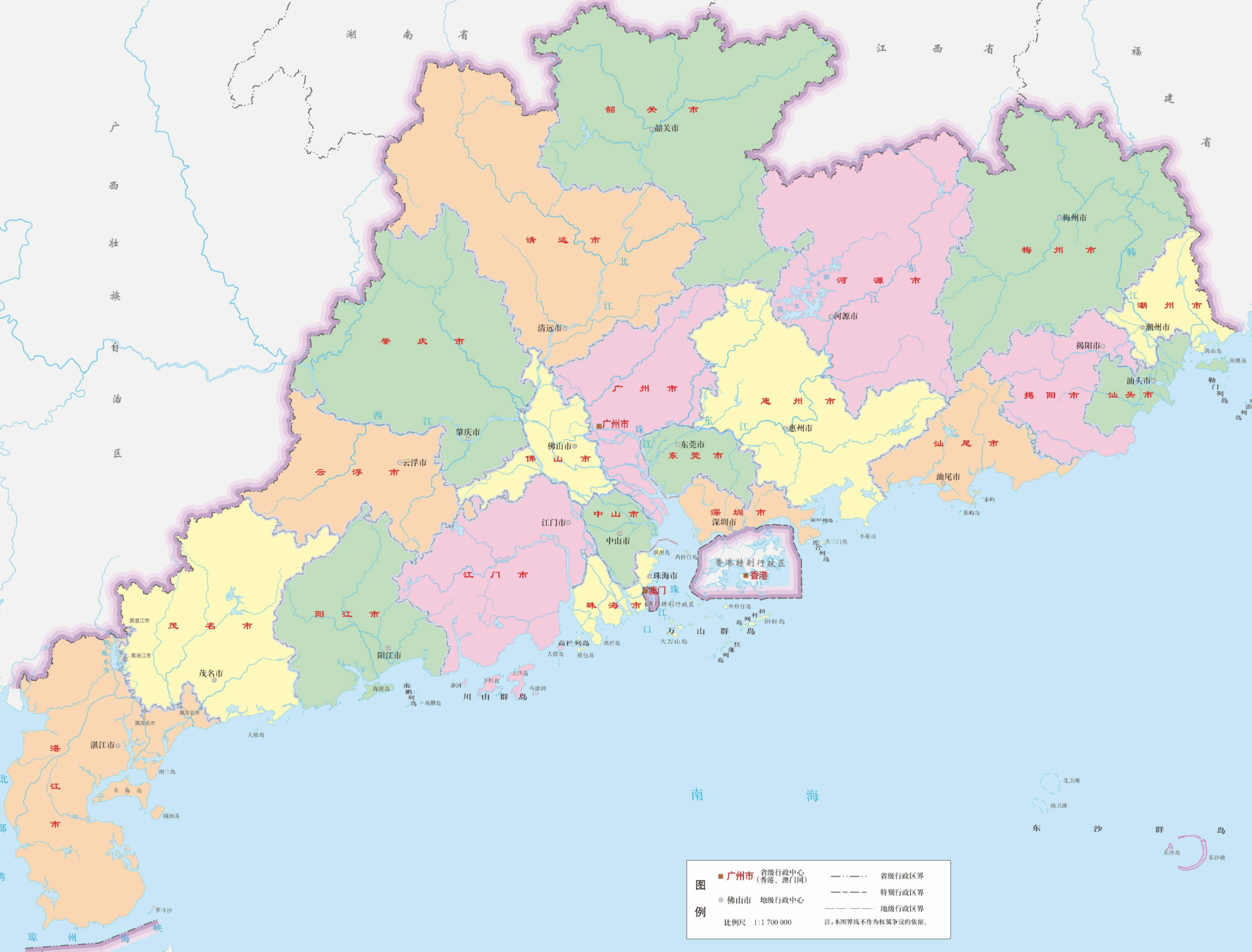 广东省地图全图高清版 比例:1:1700000
